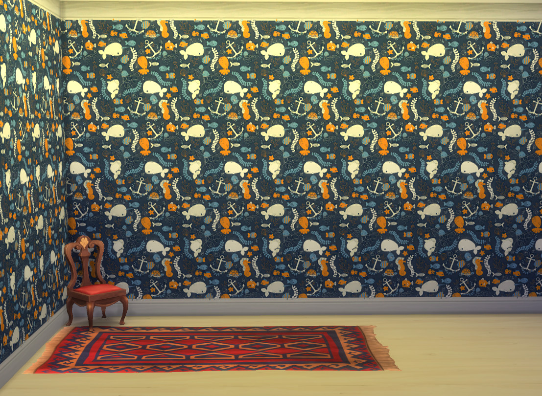 Marimekko Aarni-tapettia Simeillenne olkaat hyvät! Toimii kaikissa korkeuksissa hyvin, maksaa 12§ per pala ja käytössä on samat maxis-listat kuin kaikissa muissakin tapeteissani.